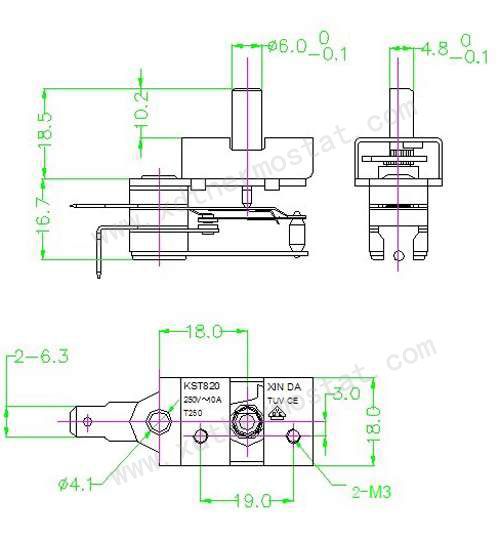 型号:KST820-11261、规格:250VAC/10A2、工作角度:270±5°3、工作温度:80±5℃4、开机角度:80±5℃(室温25℃)5、耐压:2000V/1S 击穿电流:0.5 mA