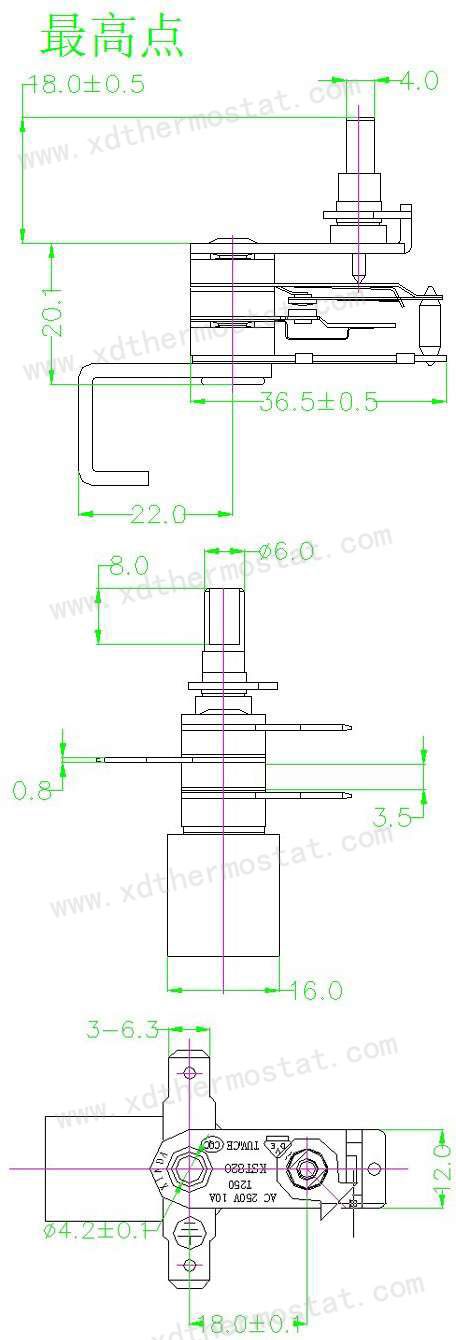型号:KST820-1545-11、规格:250VAC/10A2、工作角度:270±3°3、工作温度:200±7℃4、开机角度:80±5℃(室温25℃)5、耐压:2000V/1S 击穿电流:0.5mA