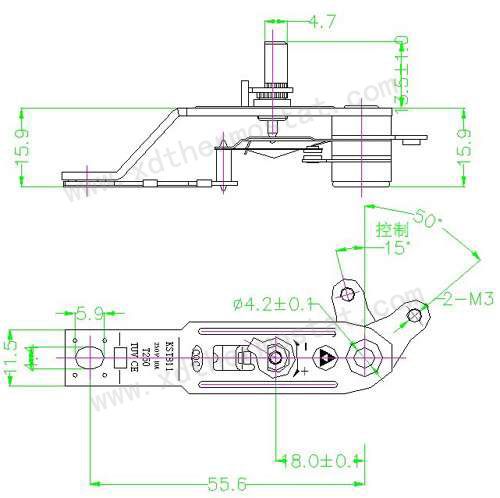 型号:KST820-101-731、机械角度:310±5°2、适用电器条件:250V/10A以下3、整机测试:室温25℃,调OFF角60-90°,旋到MAX点底板中心温度为195±15℃,温幅15-30℃