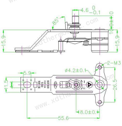 型号:KST811-104-211、机械角度:310±5°2、适用电器条件:250V/10A以下 通过2000V,0.5mA。1S的耐压测试3、整机测试:室温下,调OFF角90±10℃,旋到MAX点底板中心温度为205±15℃,温差20-40℃