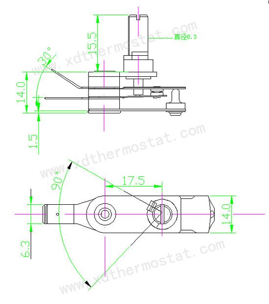 型号:XD702-17061、机械角度:270±5°2、规格:120VAC/15A3、耐压:1600V 0.5mA 1s4、工作温度:235±10℃5、开机角度:90±20℃(室温25℃)